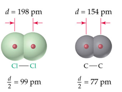 One half the distance between the nuclei of identical atoms that are bonded together.