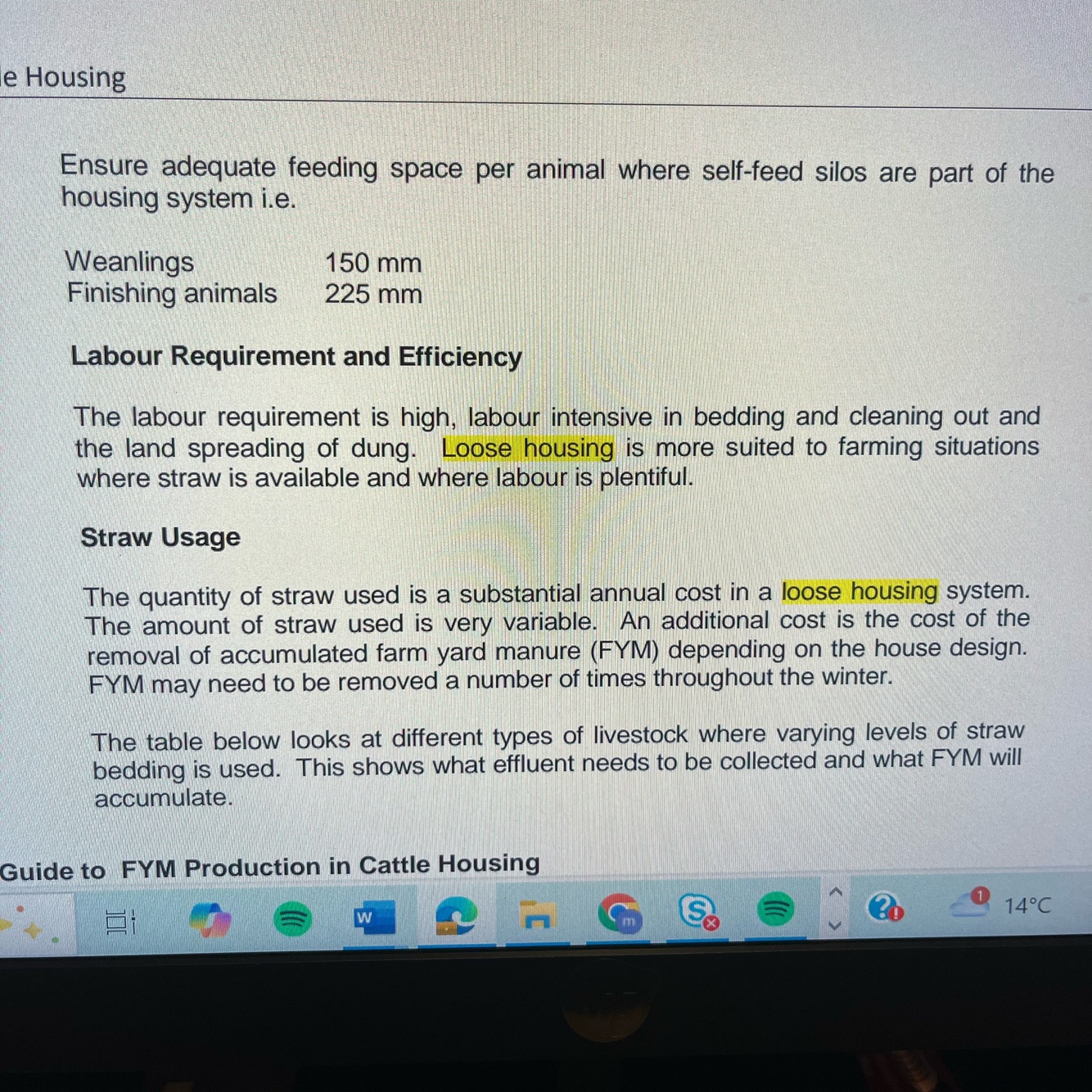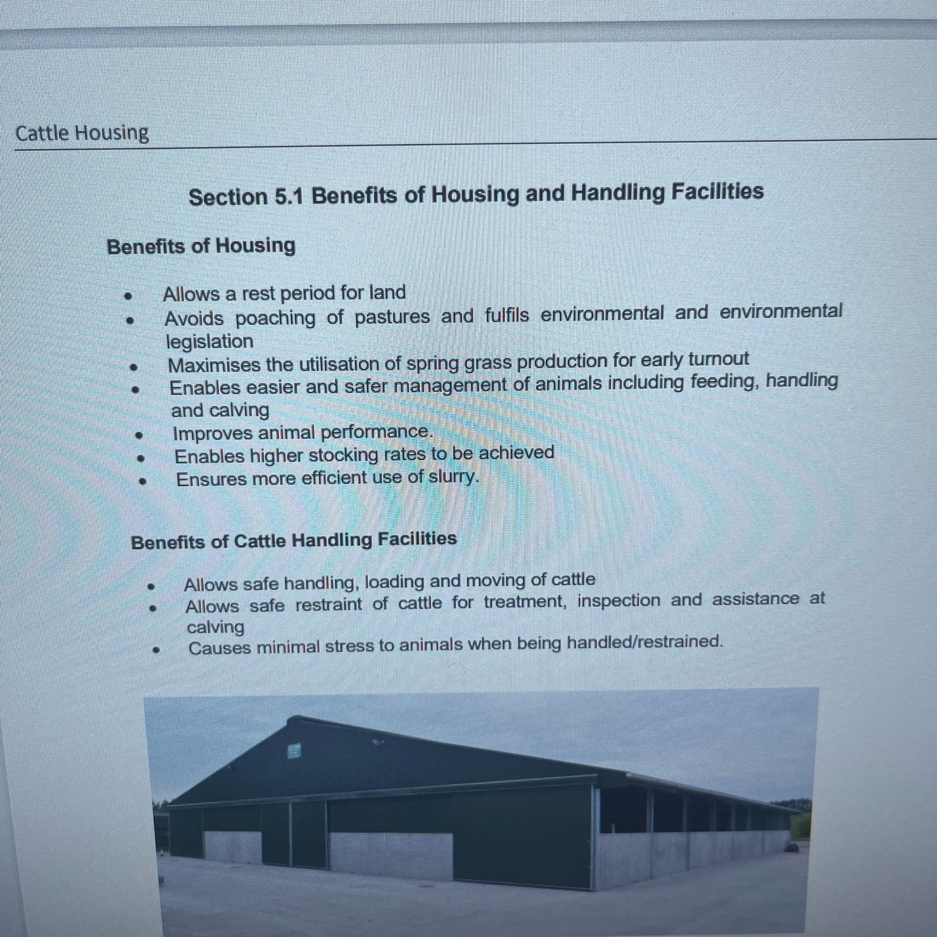a. Finishing cattle (550kg) cattle require 4.0 m2 - 6.0 m2 lying area when housed on straw