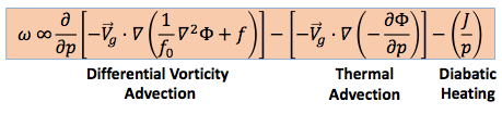 As with the ………………………., the terms on the RHS of the omega equation can be explained physically.
