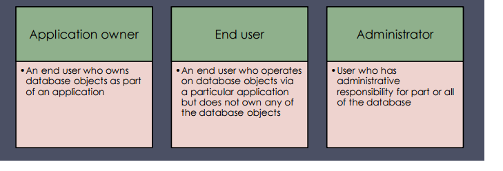 What are the 3 catrgories of database users