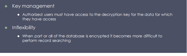 what are the main disadvantages of db encryption