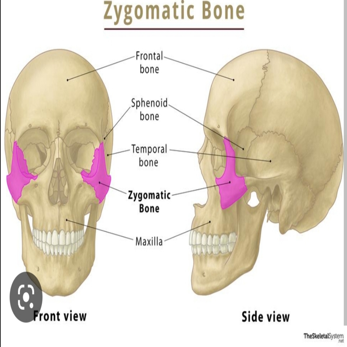 What bone forms the lateral portion of the eye orbit, lateral to nose, articulates the maxillae