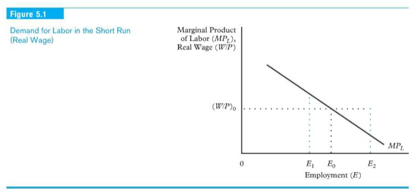 ● Express demand for labor in short run in terms of real wage: