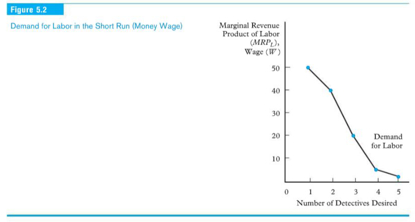 ● Labor demand curve in the short run slopes downward because it is the MRPL Curve