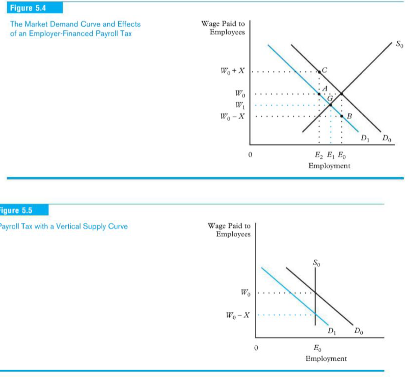 ● Effects on labor demand: Employees are not exempted from bearing costs when the government chooses to generate revenues through a payroll tax on employers