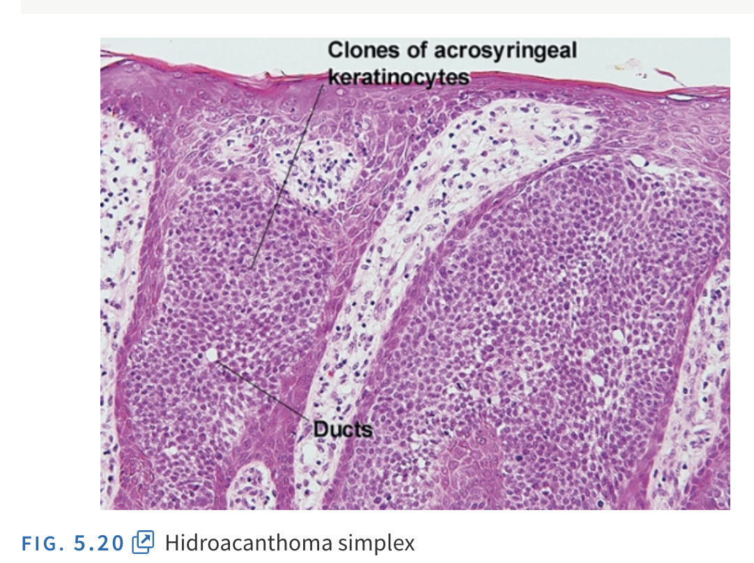 According to Elston, what looks like a clonal seborrheic keratosis but has ducts?