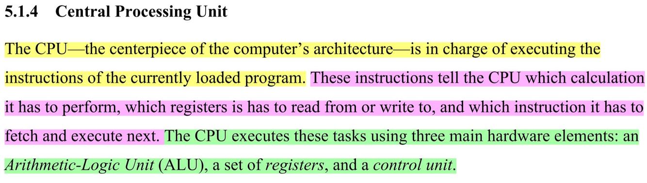 : Since the CPU is the computer’s centerpiece, it must perform as efficiently as possible. In order to boost performance, it is desirable to store the intermediate results that computer programs generate locally, close to the ALU, rather than ship them in and out of the CPU chip and store them in some remote and separate RAM chip. Thus, a CPU is typically equipped with a small set of 2 up to 32 resident high-speed registers, each capable of holding a single word.