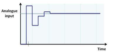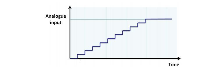 A successive approximation ADC is similar to a ramp ADC but uses a different sequence of test voltages to try. Remember that the purpose is to generate a binary number representing the value of the input voltage