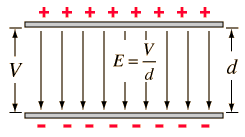 E = V / d,