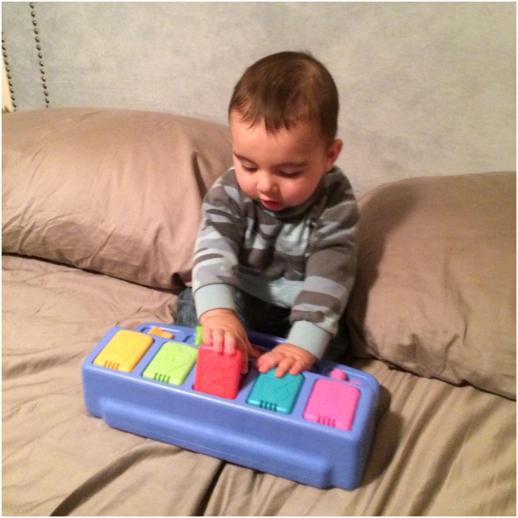 4) attends to consequences of actions (banging toy and seeing it makes noise)