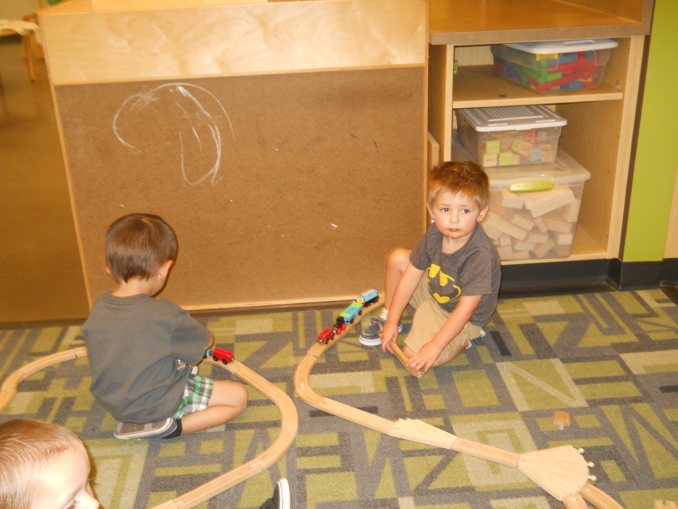 1) Child increases the use of non-realistic objects in pretending (substituting a block for a train)