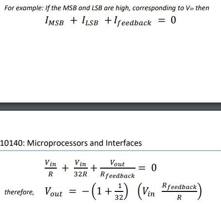 Weighted resistor DAC, example If the MSB and LSB are high, corresponding to Vin then