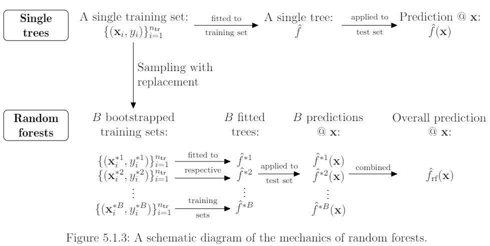 Pros and cons of random forests compared to a single decision tree (3; 5.1.2)