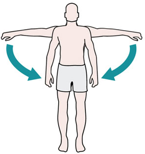 Motion of a limb toward the midline.