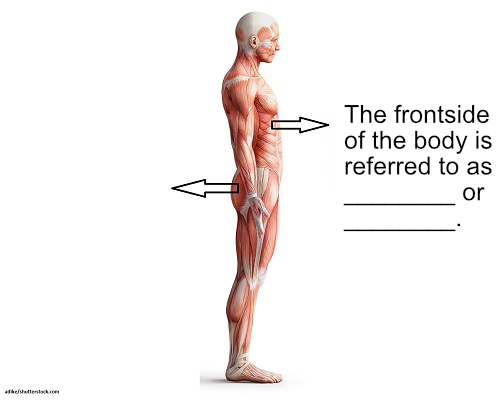 The front surface of the body; the side facing you in the standard anatomic position.