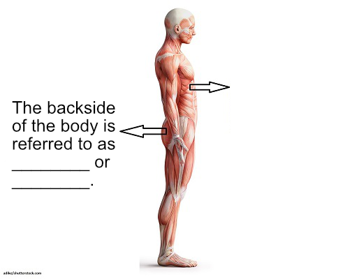 The back surface of the body; the side away from you in the standard anatomical position.