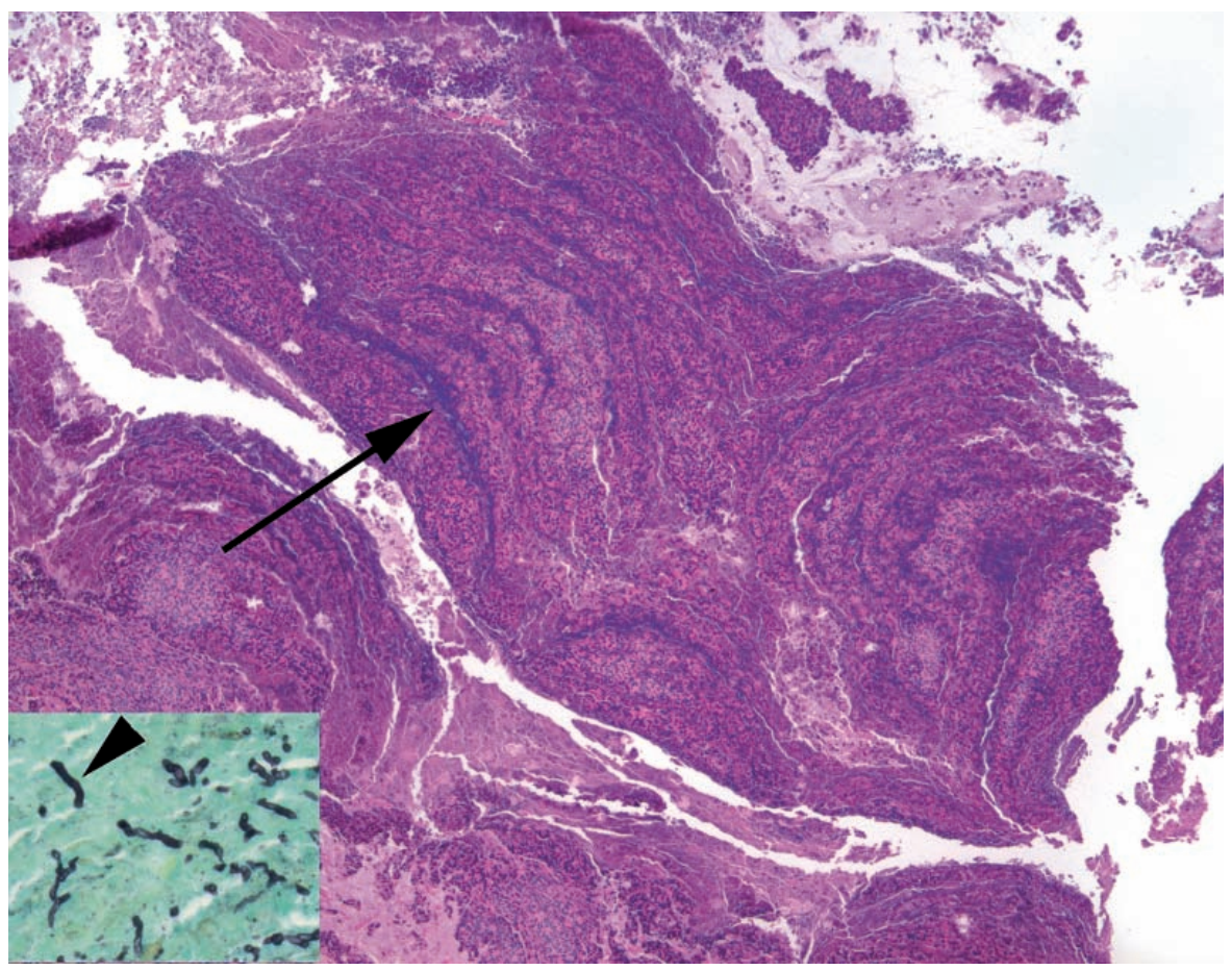 Inset: Black fungal hyphae on GMS
