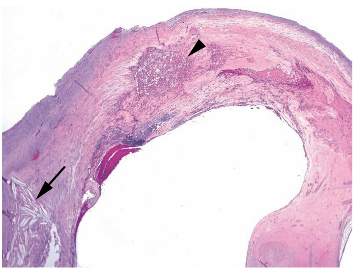 An inner layer of elastic arterial wall, plus plaque, debris, thrombus… no real differential of concern.