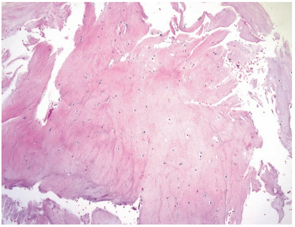Fragments of bone, respiratory and squamous mucosa, and mucous glands.