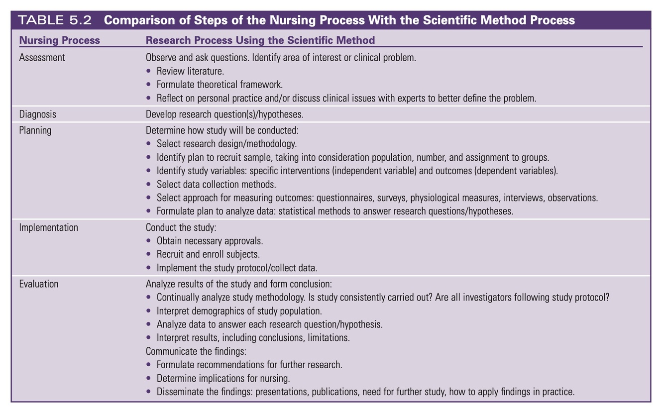 Compare the steps of the nursing process with the scientific method process