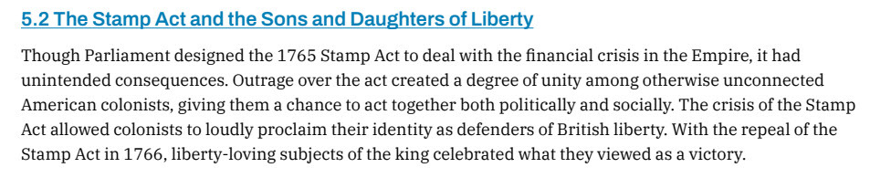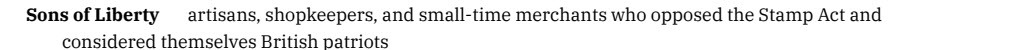 Summarize the Stamp Act and the Sons/Daughters of Liberty
