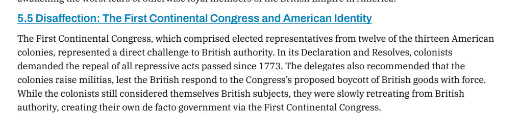 Summarize the First Continental Congress