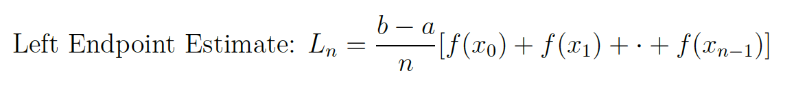 What is the formula for finding a left Riemann sum?