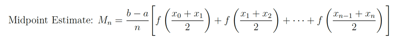 What is the formula for finding a midpoint Riemann sum?