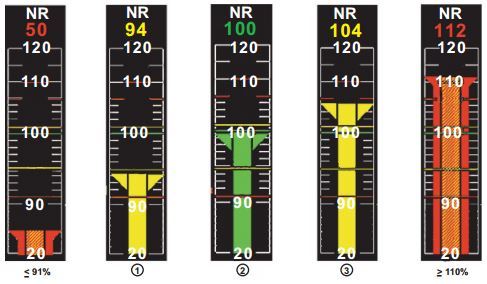 UPPER RED RANGE BEGINS AT 110% TO CORRESPOND WITH THE POWER OFF LIMIT