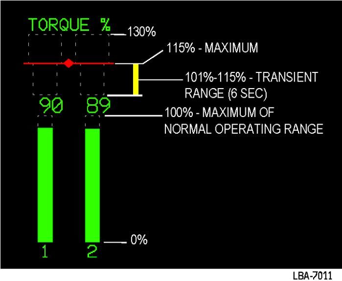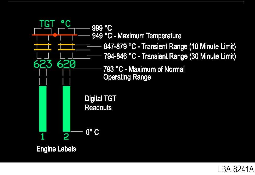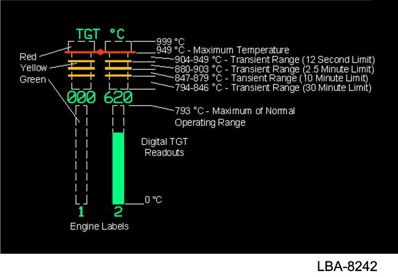 Each engine incorporates a TGT limiter control which limits engine operation according to the following indicated TGT value: