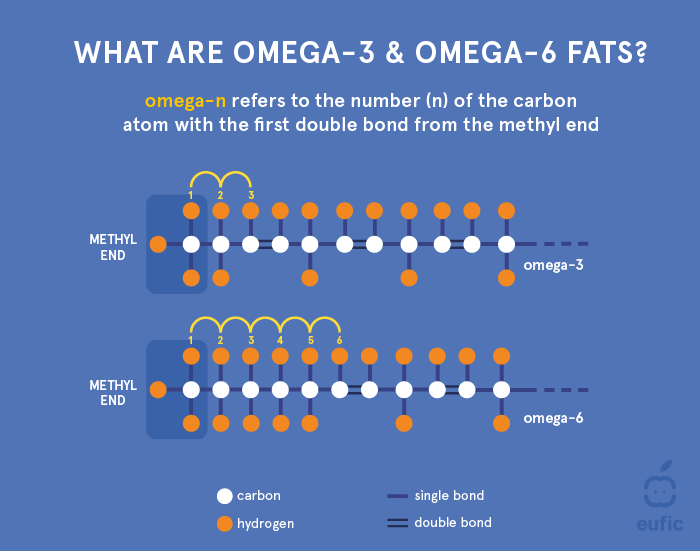 Omega-n refers to the number of the carbon with the first double bond from the methyl end