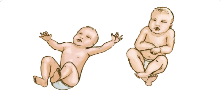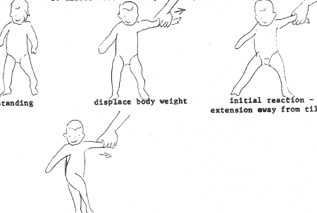 Stimulus: Quickly but firmly tip infant off-balance backwards