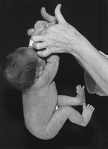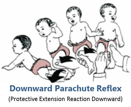 Stimulus: rapidly lower infant’s head toward supporting surface while suspended vertically