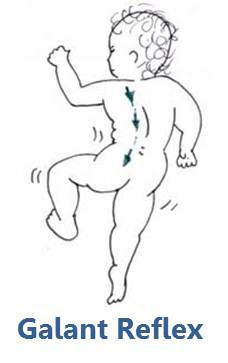 Stimulus: With infant in prone suspension, tap or scratch alongside infant’s spine from shoulder to buttocks.