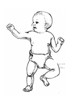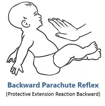 Response: backward arm extension or arm extension to one side spinal rotation