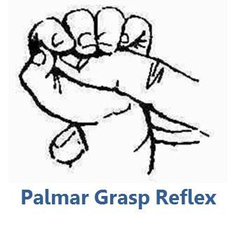 Response: finger flexion; reflexive grasp