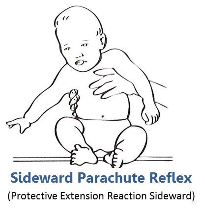 Stimulus: Quickly but firmly tip infant off balance to the side while in the sitting position