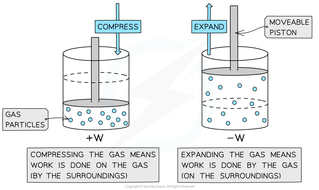 Therefore, when the gas expands, work is done by the gas is (positive or negative)