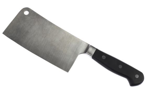Large heavy knife with rectangular blade used for chopping and cutting through bones.