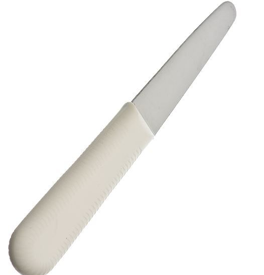 Short rigid blade that is dull with a blunt tip, used for opening oysters.
