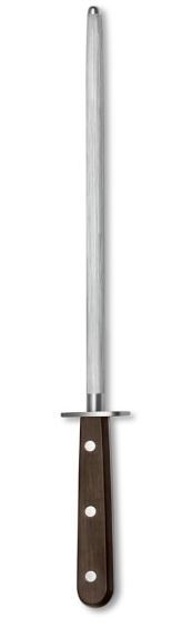 Scored, slightly abrasive steel rod used to hone or straighten a blade in between sharpening and immediately after sharpening a blade.