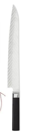Long thin blade used for slicing cooked meat. The tip may be round or pointed and the blade may be rigid or flexible.