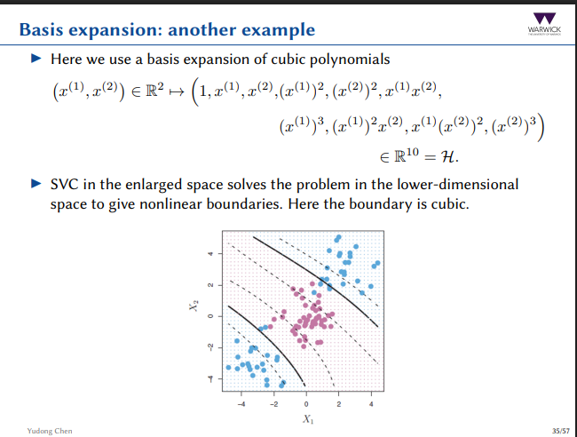 If we use a basis expansion of cubic polynomials on (x(1), x(2)</sup), how does the SVC optimisation problem change?