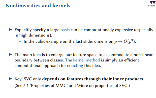 What method do we use to efficiently enlarge our feature space to accommodate a nonlinear boundary between classes?