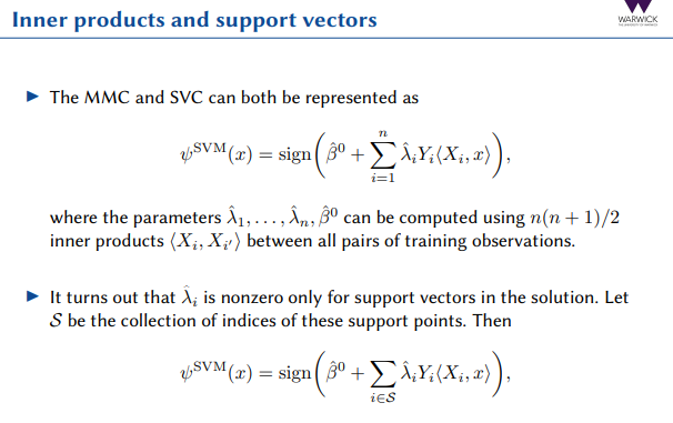 With a kernel, what does the SVM classifier for a new observation depend on?