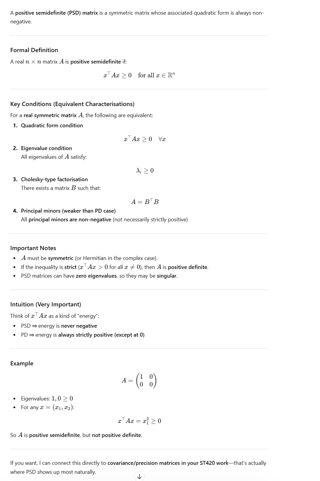 What is the definition of a positive semi-definite matrix?