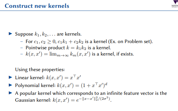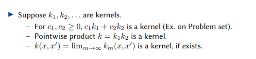 Given k1 and k2 are kernels, what else is a kernel?