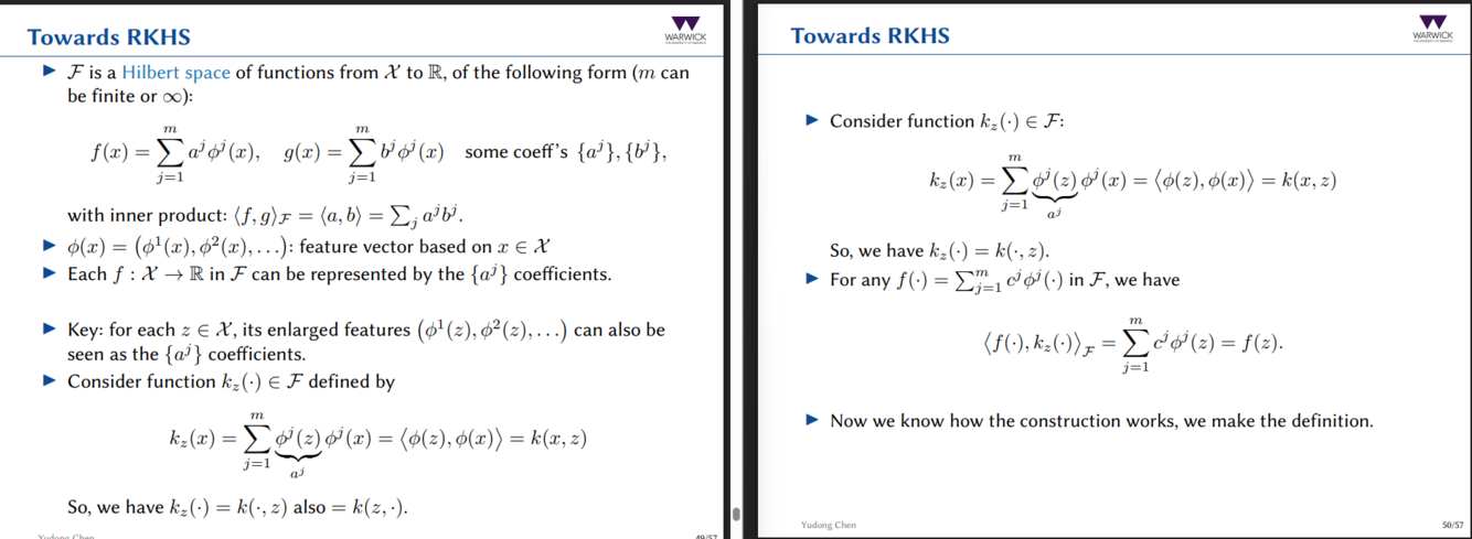 How do we build towards the reproducing kernel Hilbert space ( RKHS)?