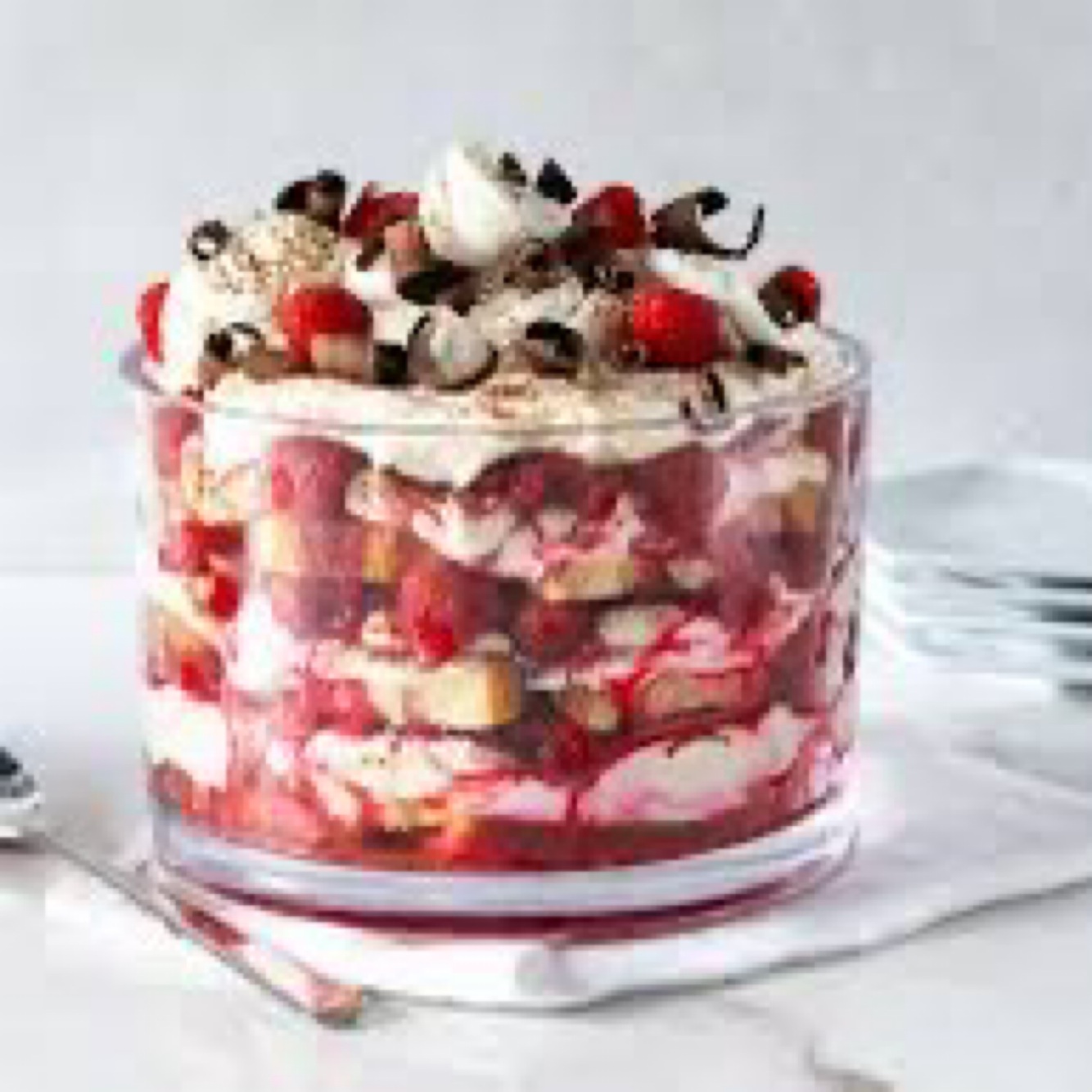 A cold sweet dish that has layers of cake fruit, custard, and cream фруктовый торт с кремом