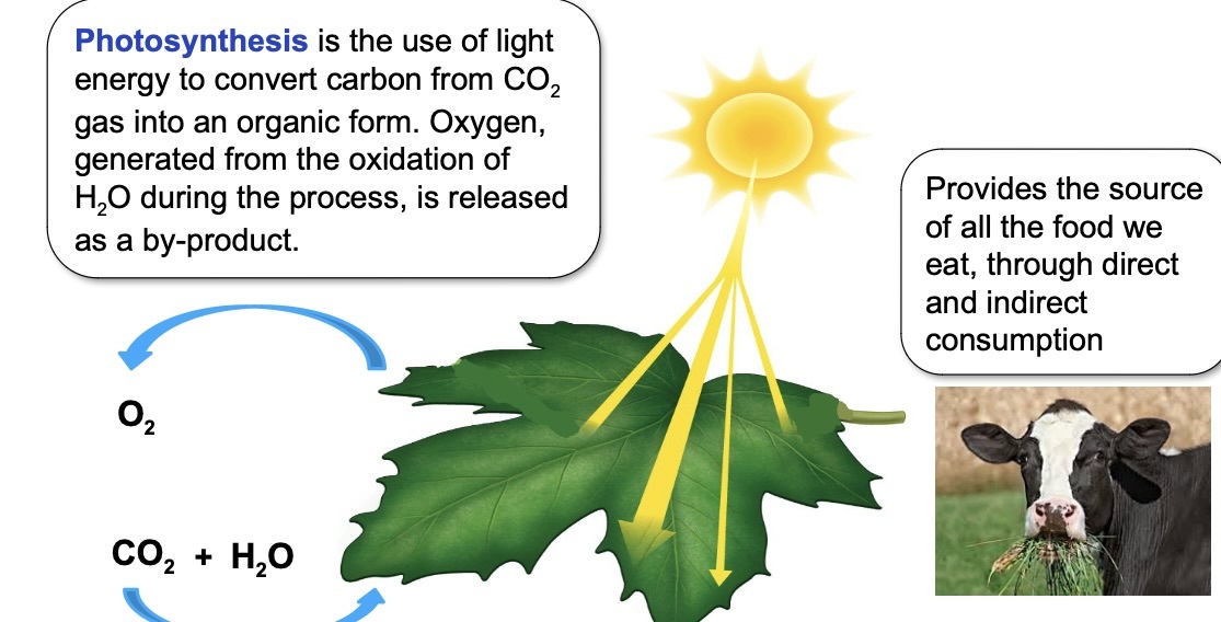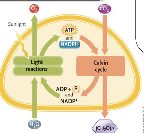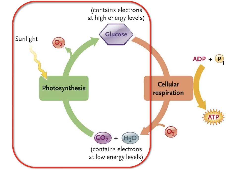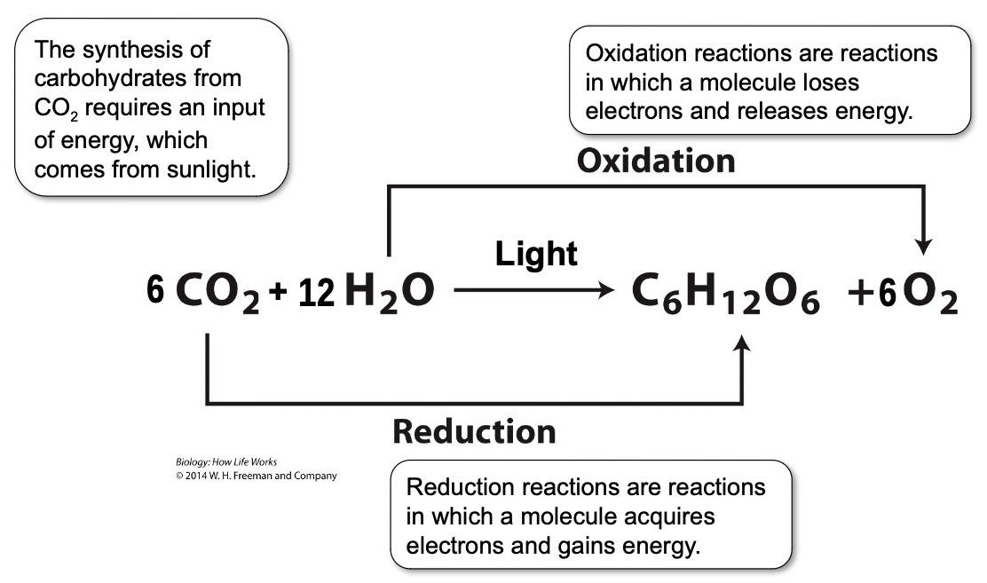 This requires an input of energy. This energy comes from sunlight and the transfer of electrons from an electron donor (ultimate e- donor is water)